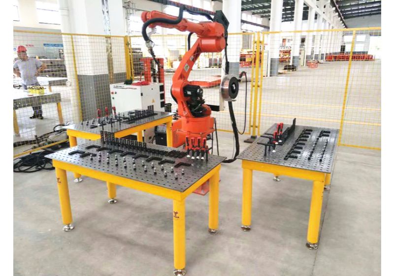 The D16 2D Welding Table has a horizontal / vertical hole arrangement in the 50 mm grid on the desk top, which is complemented on the sides with a drilling series. The diameter of the drilling hole is 16 mm, the thickness of the material approx. 11,5-13 mm and is manufactured with steel. Grid lines with a spacing of 50 mm help you to arrange your device.