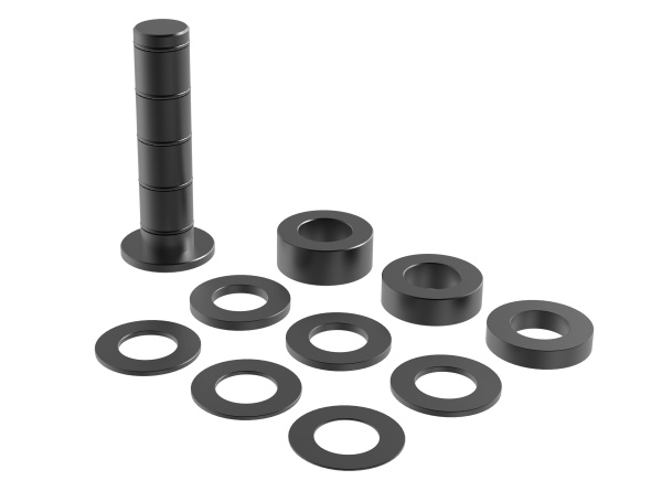 The set of supports, divided in 10 pieces, offers the opportunity of creating bearing surfaces of various heights. The individual supports can be used to compensate for 1-100 mm height differences. The smallest graduation in the supports is 1 mm in order to achieve the intended height precisely. The degree is specified on the particular discs. The supports can be adjusted easily and precisely with the help of O-rings. The set of supports can universally be inserted in all drill holes of type 28.