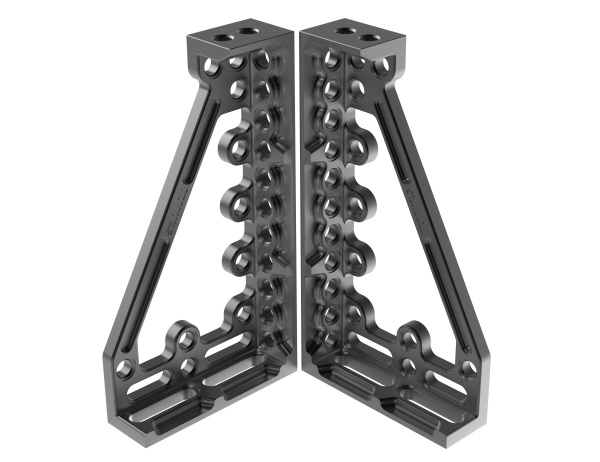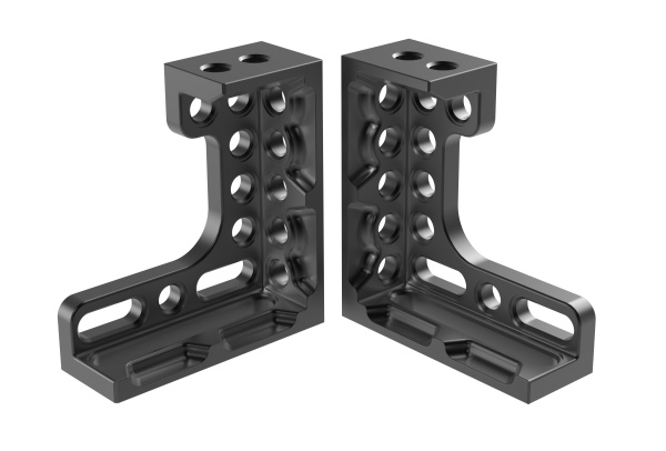 The Stop and Clamping Square offers versatile positioning and high stability, making it ideal for heavy-duty clamping tasks. Its 3-dimensional design, combined with system bore holes and an oblong slot, allows for precise, adjustable clamping in multiple orientations.