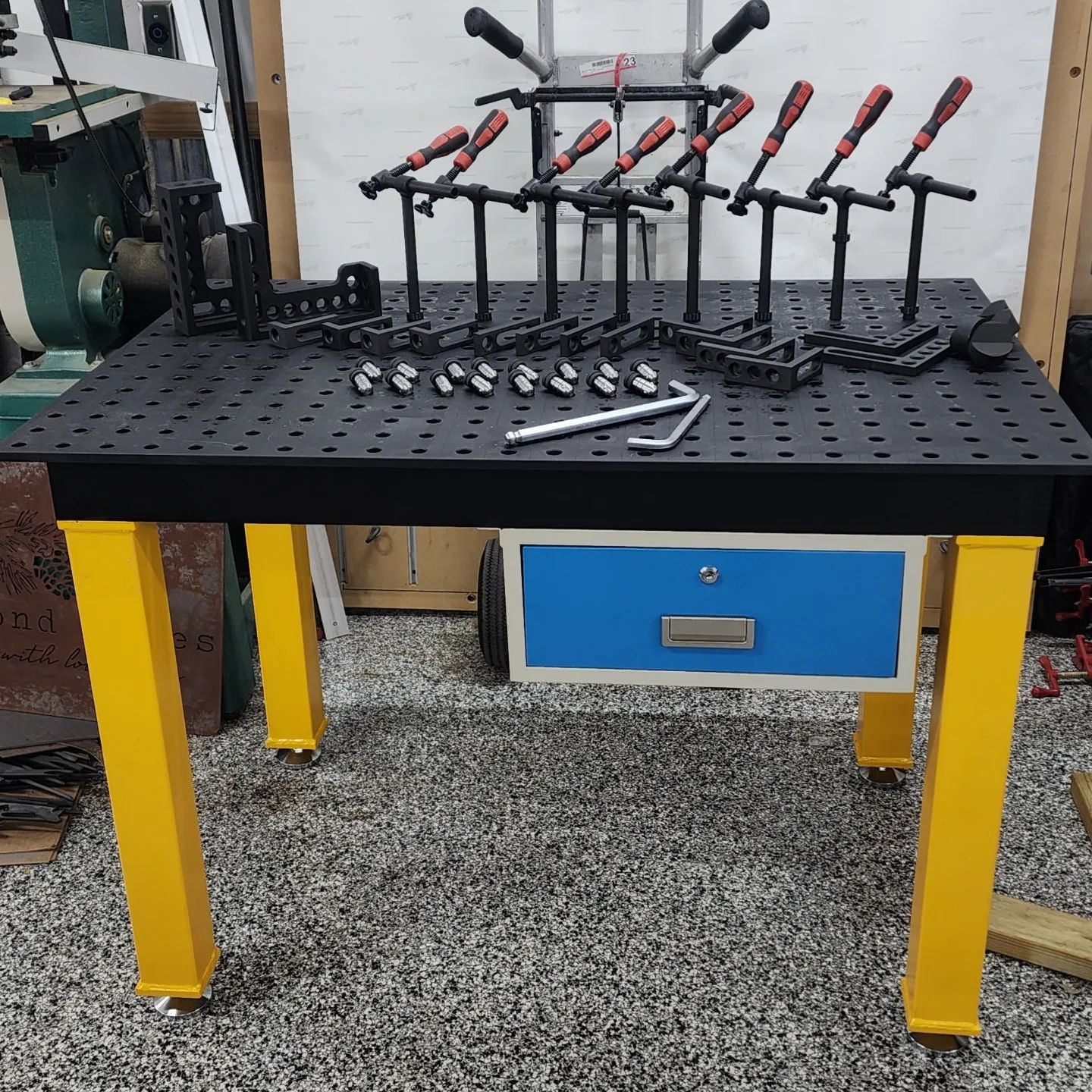 With the D16 2D welding table with drawer, you create your perfect workplace in a modular system. The table can be adapted and expanded to fit your individual needs. Whether sawing, drilling or welding – the absolute all-rounder in every workshop!